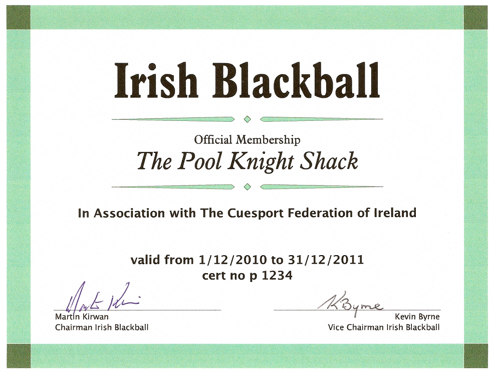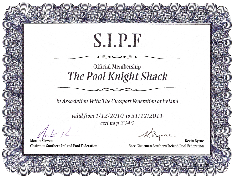 Affiliations with the Irish Pool Association , the S.I.P.F / Irish Blackball , & DBSL Snooker